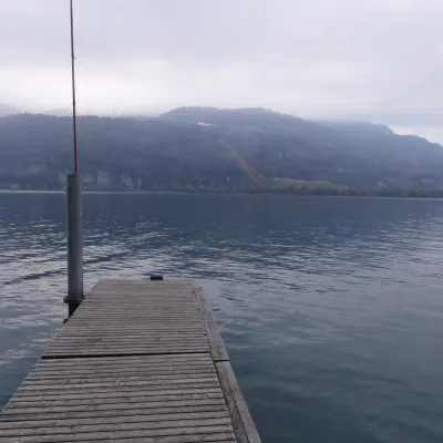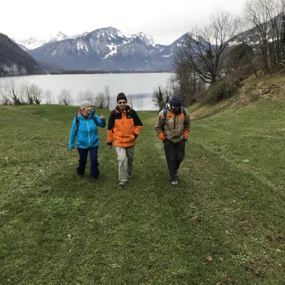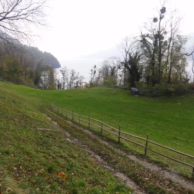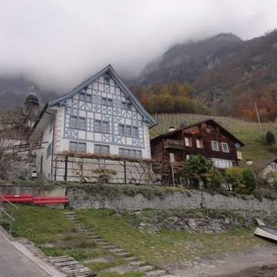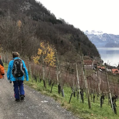 La petite commune portuaire est comme endormie. Les bateaux sont bâchés et à quai. Il y a peu de promeneurs et encore moins de touristes. Tout est calme et reposant. Le début de notre randonnée serpente entre lac et montagne. Après une heure, le mince filet de route s’arrête complètement. D’ici jusqu’à Quinten, les quelques habitants vivent sans voiture. Avant Quinten – où nous prendrons le bateau – des figuiers et des plaqueminiers (arbres à kakis) ornent le chemin. En été, du fait des falaises et de la douceur du lac, le climat est idéal pour ces fruits et aussi la vigne. En hiver, le village de Quinten est un lieu oublié et charmant de l’Est de de la Suisse.