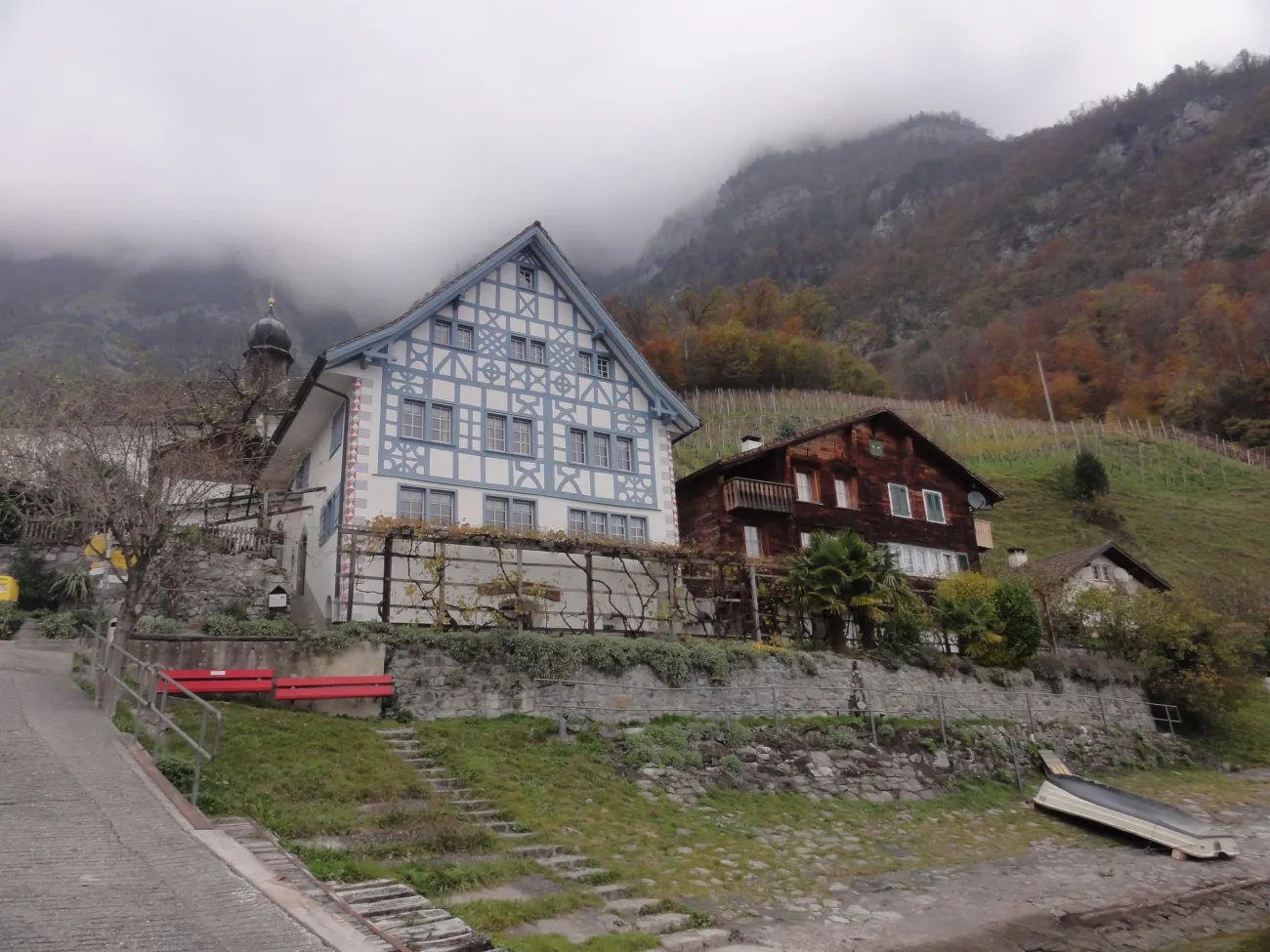 Wir starten in Seewen und werden entlang der sonnenexponierten Seite des Sees wandern. Die kleine Hafengemeinde liegt im Winterschlaf. Die Boote stehen zugedeckt am Strand. Kaum Einwohner, kaum Touristen. Es ist ruhig und herrlich. Der Anfang der Strecke ist eine schmale Strasse, die zwischen Berg und See schlendert. Nach circa einer Stunde, d.h. in Betlis, hört die ganz auf, ab hier bis Quinten lebt man autofrei. Vor Quinten - wo wir das Schiff nehmen werden - schmücken u.a Feigen- und Kakibäume den Weg. Hier herrscht ein ideales Klima auch für Rebbau. Im Winter bildet das Dorf von Quinten eine verlassene aber sehr attraktive Ecke der Ostschweiz.
