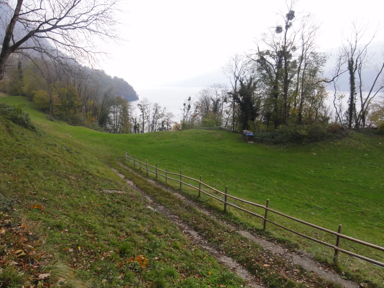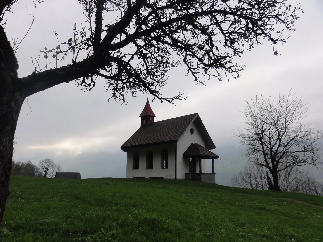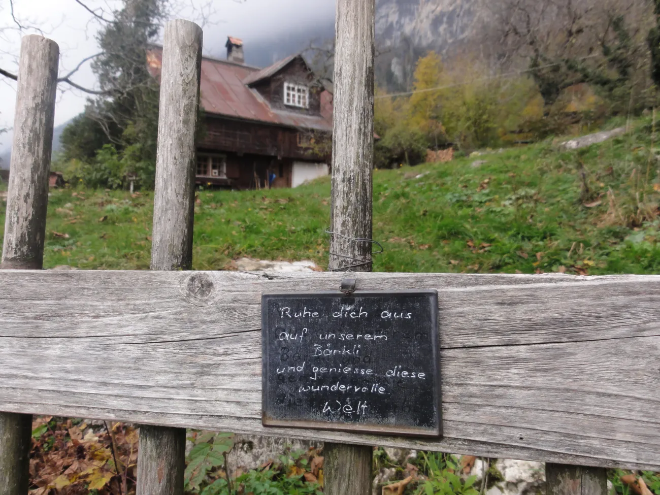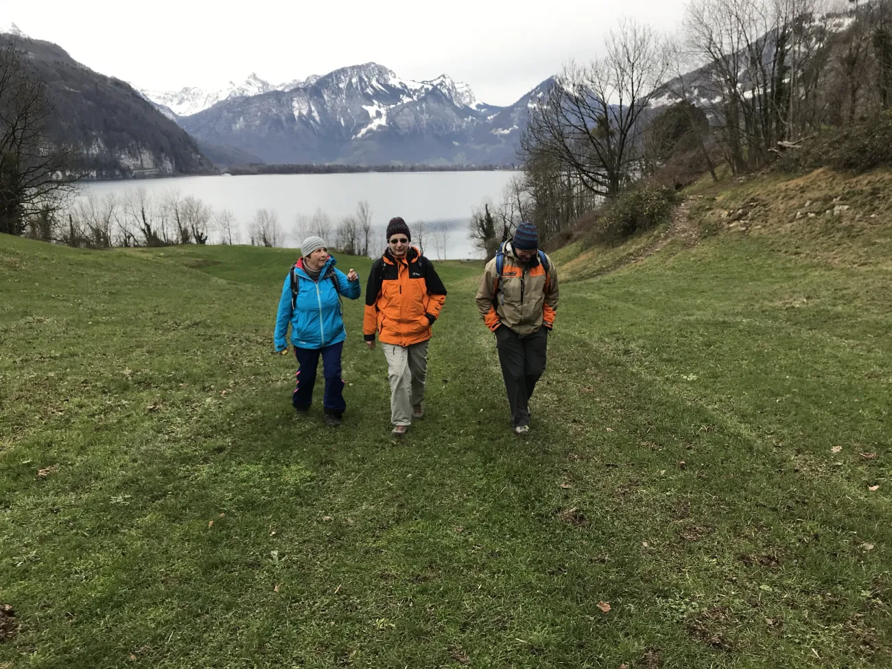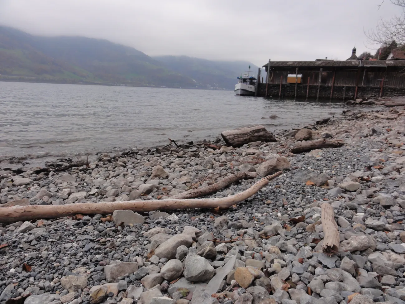 La petite commune portuaire est comme endormie. Les bateaux sont bâchés et à quai. Il y a peu de promeneurs et encore moins de touristes. Tout est calme et reposant. Le début de notre randonnée serpente entre lac et montagne. Après une heure, le mince filet de route s’arrête complètement. D’ici jusqu’à Quinten, les quelques habitants vivent sans voiture. Avant Quinten – où nous prendrons le bateau – des figuiers et des plaqueminiers (arbres à kakis) ornent le chemin. En été, du fait des falaises et de la douceur du lac, le climat est idéal pour ces fruits et aussi la vigne. En hiver, le village de Quinten est un lieu oublié et charmant de l’Est de de la Suisse.